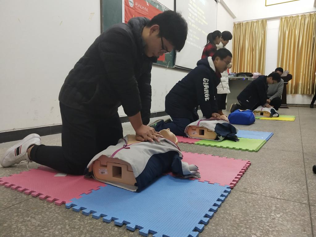 第二讲,心肺复苏。判断、呼救、按压、除颤,方梦萍向大家介绍了院前急救的重要性,在详细演示之后,现场指导学生进行急救,纠正大家在急救过程中出现的问题。