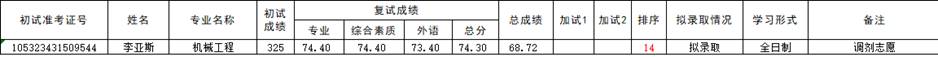 湖北文理学院2023年机械工程专业硕士研究生调剂志愿考生递补拟录取名单