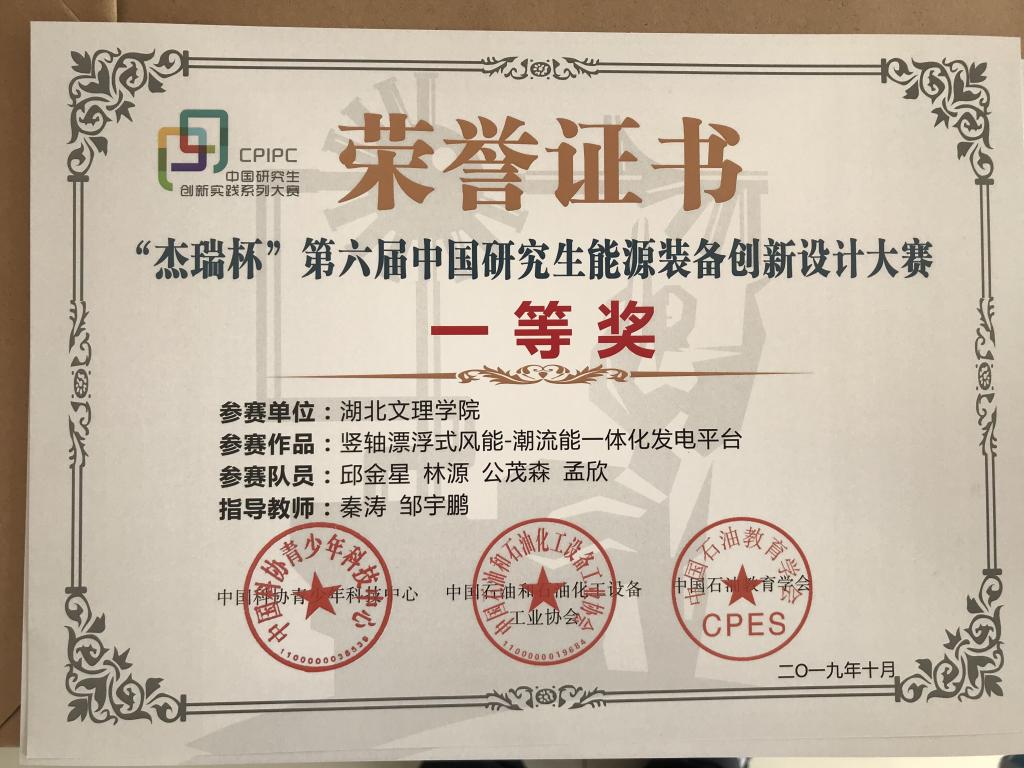 (机械学院 通讯员 秦涛)10月18日至20日,在中国石油大学(华东)举行的“杰瑞杯”第六届中国研究生能源装备创新设计大赛全国总决赛中,我校首届研究生邱金星同学表现优异,参赛作品《竖轴漂浮式风能-潮流能一体化发电平台》,经过演示、路演、答辩等环节的激烈角逐,喜获全国总决赛一等奖。星空体育登录网页入口秦涛老师获评"优秀指导教师"。