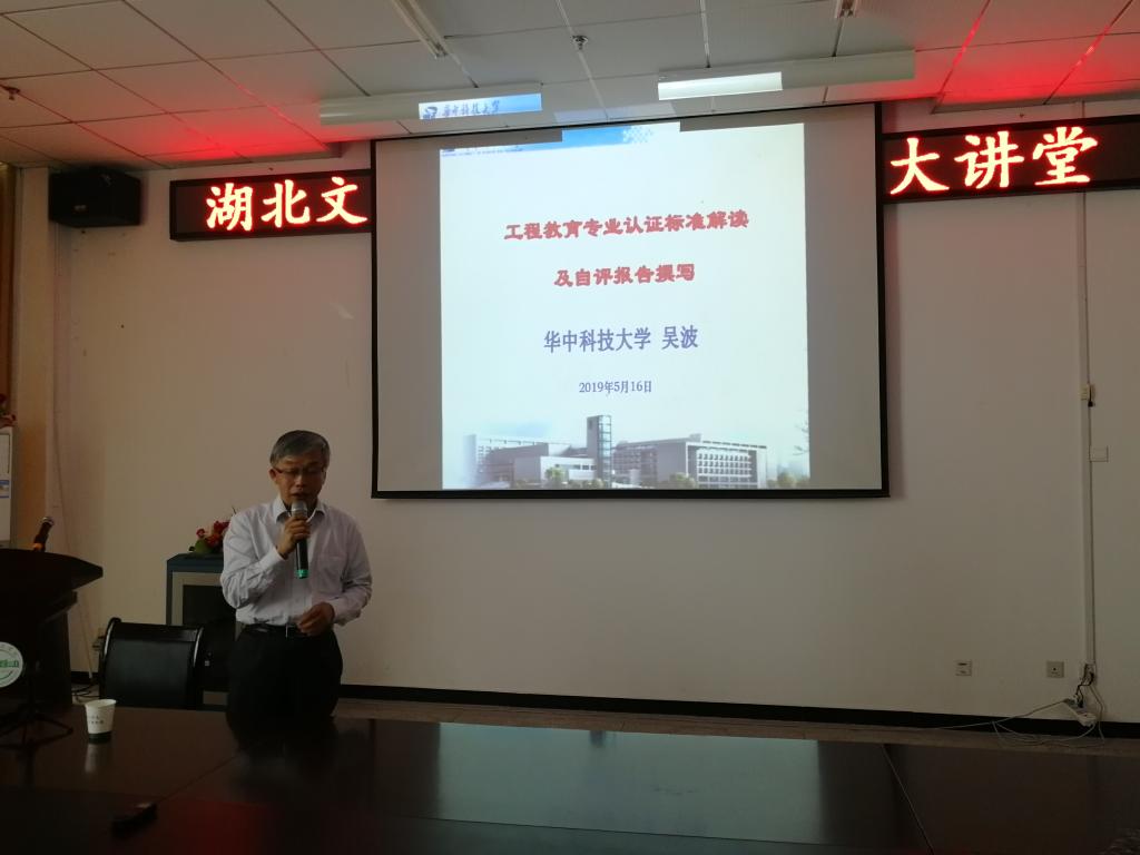5月16日下午,华中科技大学二级教授、博士生导师,中国工程教育认证协会认证专家吴波,应邀前来我校教学大讲堂指导工程教育专业认证的实施,学校质评中心、教务处有关领导、工科学院专业负责人和机械学院全体教职工聆听了此次报告。报告由星空体育登录网页入口院长刘克非主持。