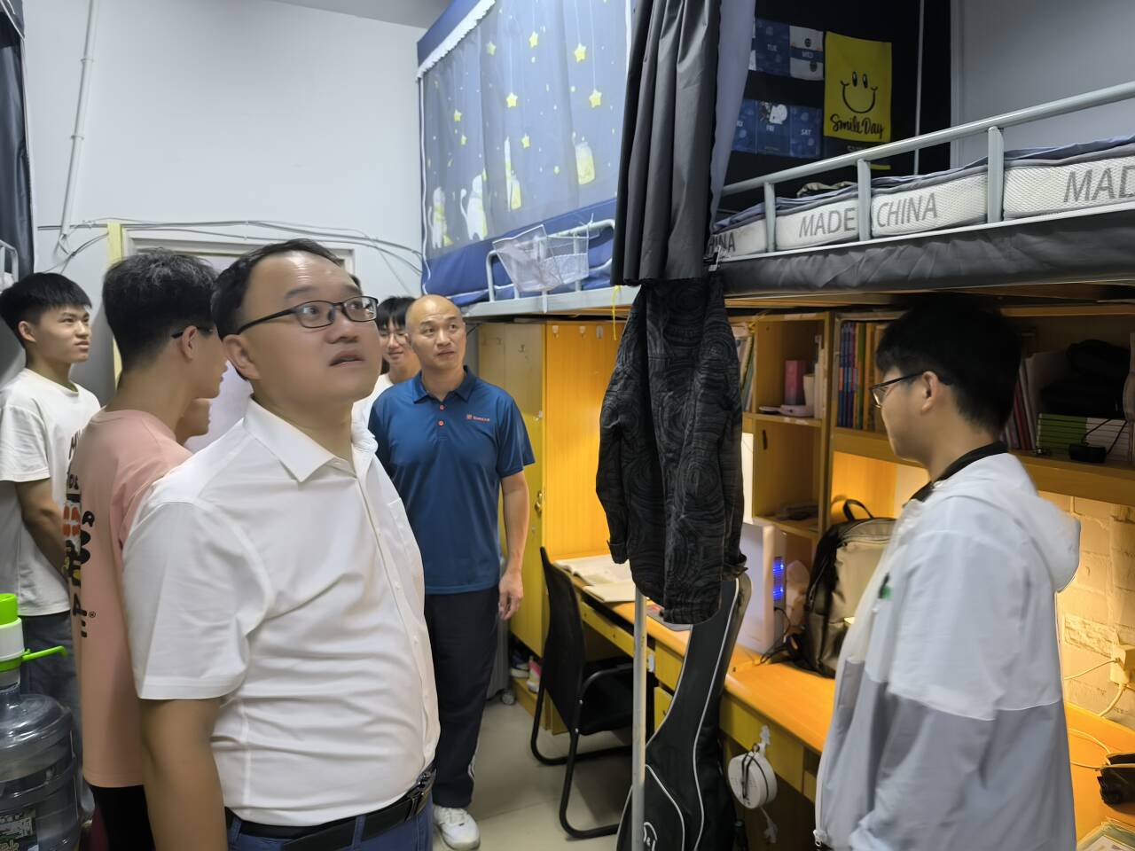 在学生宿舍,王中任与同学们亲切交流,了解我院学生暑假社会实践情况,关心同学们在校学习生活的体验感和幸福感,例如,食堂的饭菜是否多元可口、宿舍的家具设施是否安全舒适。此外,王院长鼓励同学们新学期打牢专业基础、开拓创新思维、涵养奋斗者精神,为自己的人生目标不懈奋斗,将来为国家建设贡献青春力量。