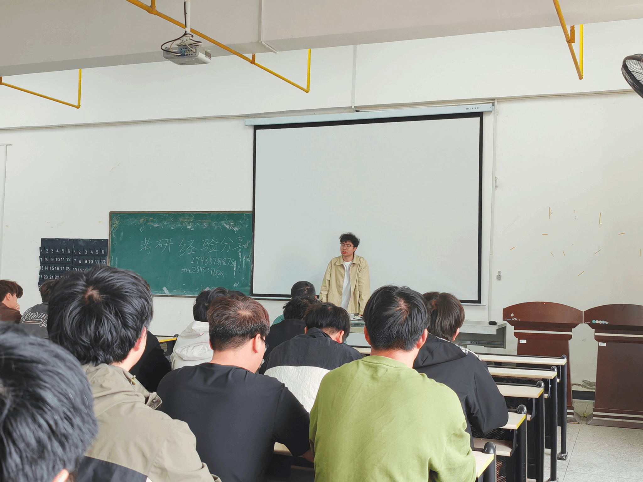 在互动环节,现场同学踊跃提问,就跨专业报考、复试技巧、调剂流程等实际问题与学长学姐深入交流。分享者耐心答疑,鼓励大家坚定信心、保持节奏,克服备考过程中的焦虑与迷茫。现场气氛热烈,掌声不断。
