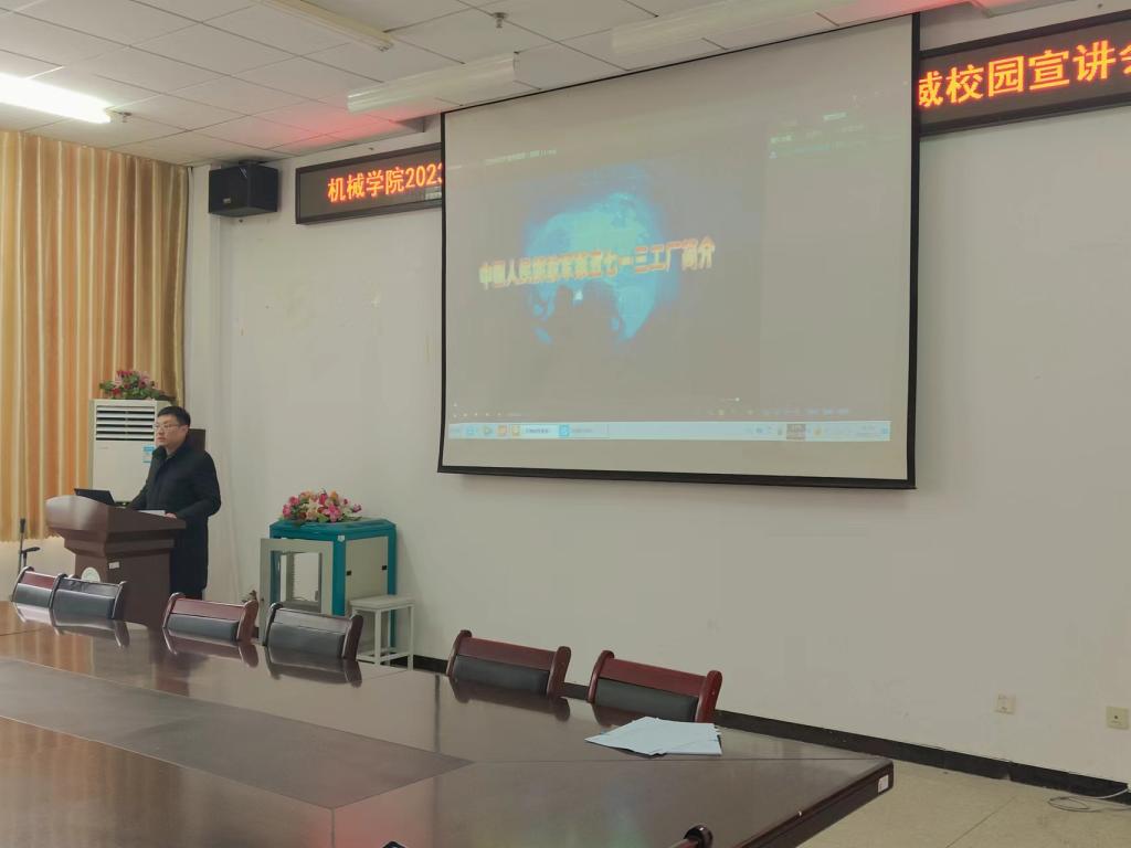 在本次活动中,中国人民解放军5713厂人力资源负责人采取了面对面交流的形式,通过PPT、视频介绍了5713厂的业务情况及用人需求,并将为全体机械本科、研究生提供多个工作岗位。通过此次宣讲,学生能够更加了解公司发展现状及就业形势,同时也激发了学生自身主动性与热情,相信在本次宣讲会中同学们可以收获心仪的岗位。